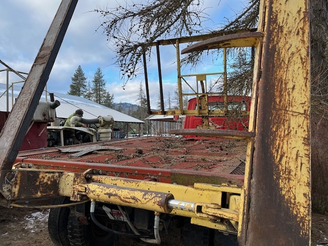 1974 FORD L700 TRUCK & NEW HOLLAND STACK RETRIEVER